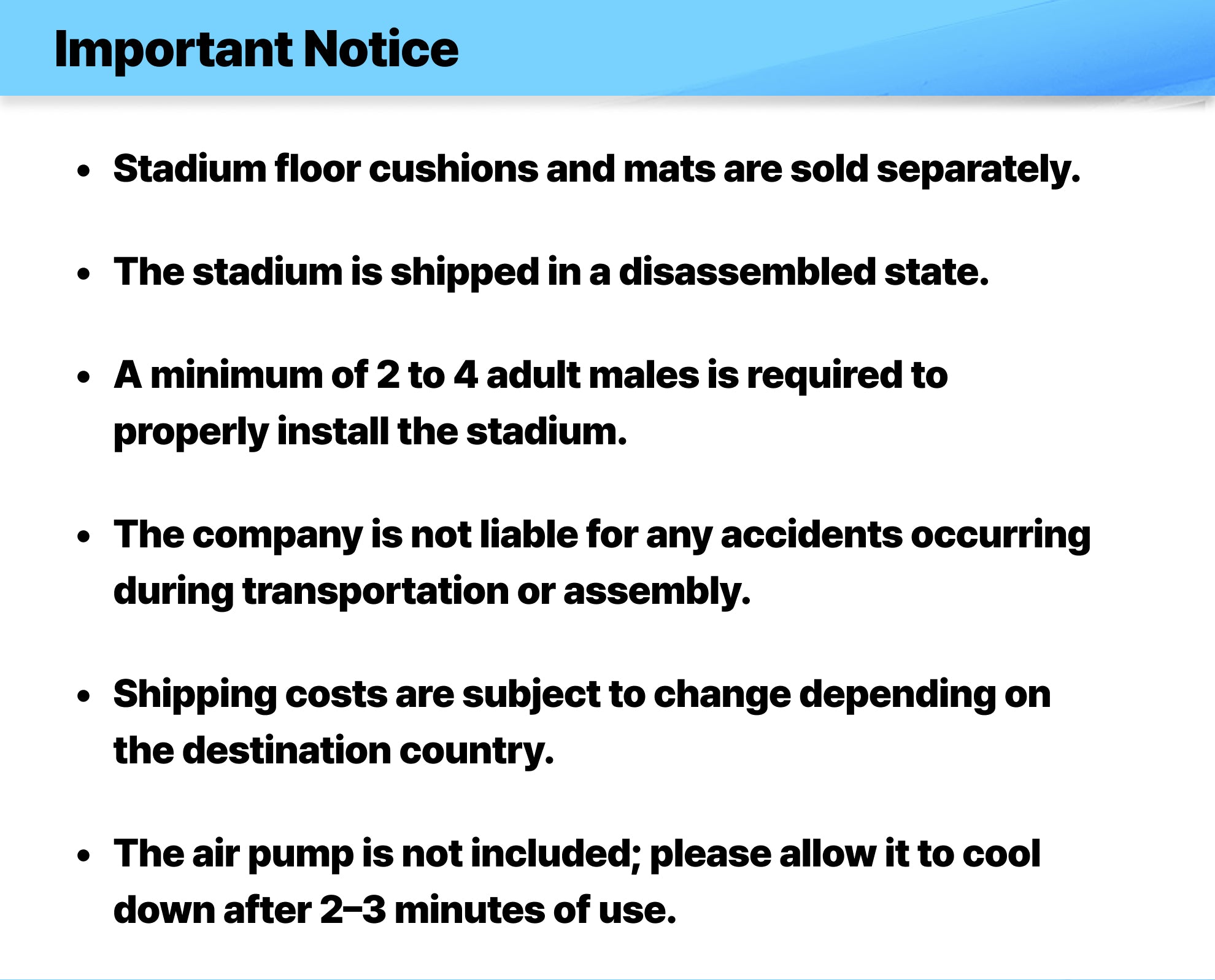 | Model | FAIF9A-B Dedicated Inflatable Stadium |